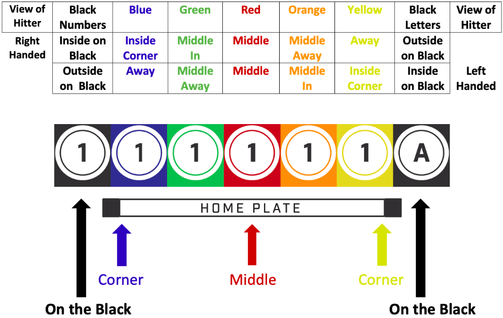 What the Color Locations mean for Pitch Location to a Righty or Lefty: