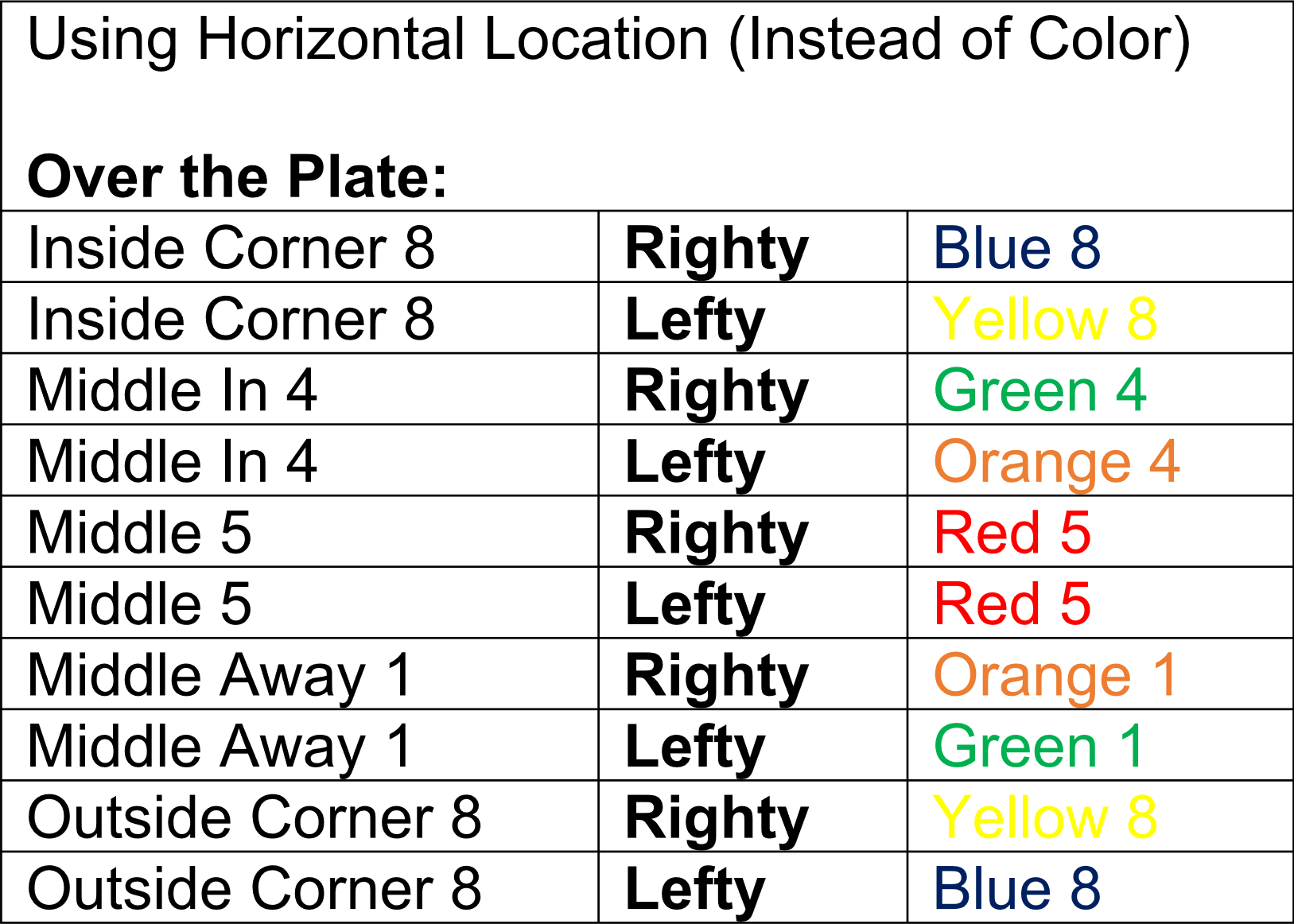 What the Color Locations mean for Pitch Location to a Righty or Lefty: